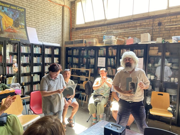 25 Haziran 2023 Pazar günü derneğimizin 15. Olağan Genel Kurul toplantısını Nesin Vakfı yönetmeni Süleyman Cihangiroğlu ve eğitim müdürü Özgün Dündar Cihangiroğlu’nun katılımıyla Zürih’te gerçekleştirdik. Süleyman Cihangiroğlu kendisinin de içinde yetiştiği Nesin Vakfı ve Aziz Nesin’in yaşamı hakkında sunum yaptı. Aziz Nesin’le olan çok değerli anılarını bizimle paylaşırken bazen bizi hüzünlendirdi, bazen de kahkahalara boğdu. Özgün Dündar Cihangiroğlu Nesin Vakfı’nın depremden etkilenen çocuklarla ilgili başlattıkları Aziz Dede’nin Gezgin Atölyesi hakkında bizleri bilgilendirdi. Üye ve dostlarımız Nesin Vakfı’nın faaliyetleri ve yaşadığı güçlükler hakkındaki sorulara ilk ağızdan cevaplar bulabildiler. Bu toplantı Nesin Vakfı ile NEVADER arasındaki bağı güçlendirdi, gelecekle ilgili yapılan planlar hepimize umut oldu.