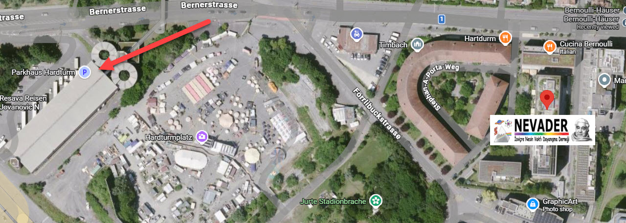 Araçla gelen katılımcılarımızın, yaklaşık 500 metre mesafedeki Parkhaus Hardturm’u kullanmalarını rica ederiz.